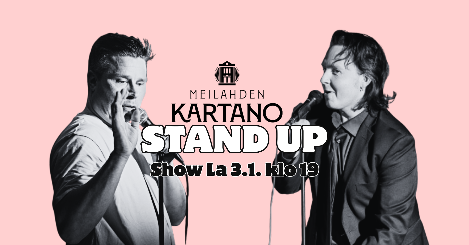 Kartanon Kahvila20€https://www.nauramaan.com/meilahden-kartano-stand-up-show-helsinki-2026-01-03